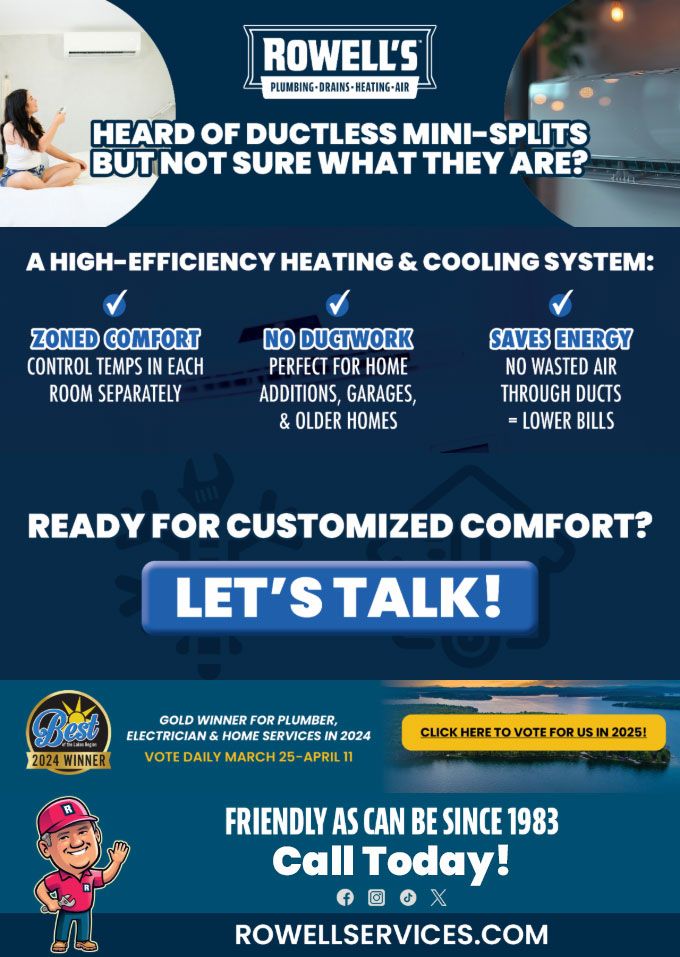 "Friendly As Can Be Since 1983!" When you need help with your plumbing, drains, heating, cooling or electrical in Bartlett, you can always rely on Rowell's Services! Call us now or book online!