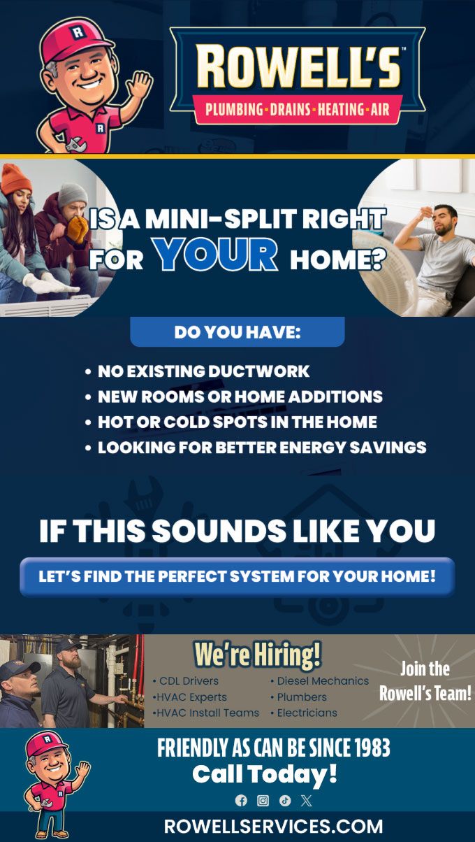 "Friendly As Can Be Since 1983!" When you need help with your plumbing, drains, heating, cooling or electrical in Bartlett, you can always rely on Rowell's Services! Call us now or book online!